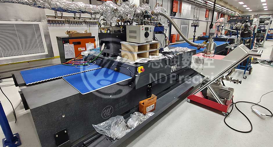 在该超长气浮平台上,分布着:次级光源平台、光束定形监测平台、高分辨率样品平台、近场探测器平台。主要作用是对XBPM、荧光靶、次级光源狭缝等通用设备的支撑,以及实现样品平台,探测器平台的位置切换以满足实验需求。