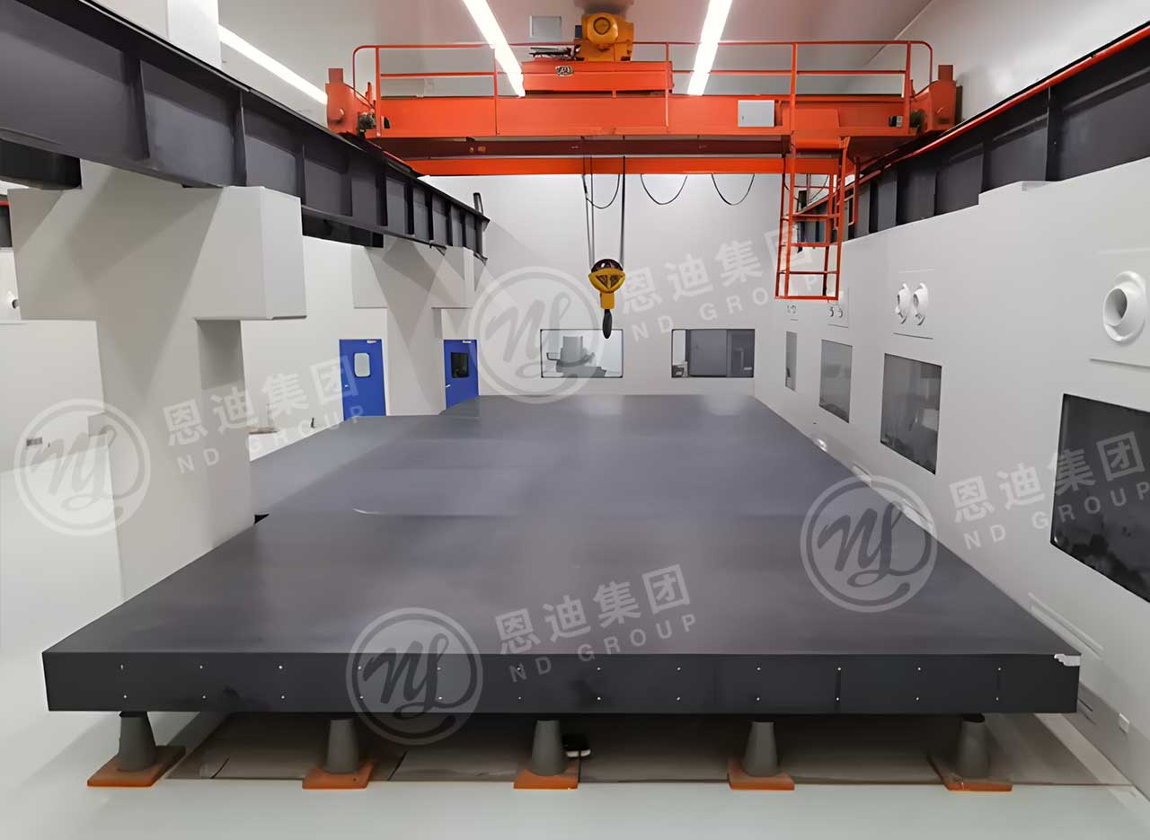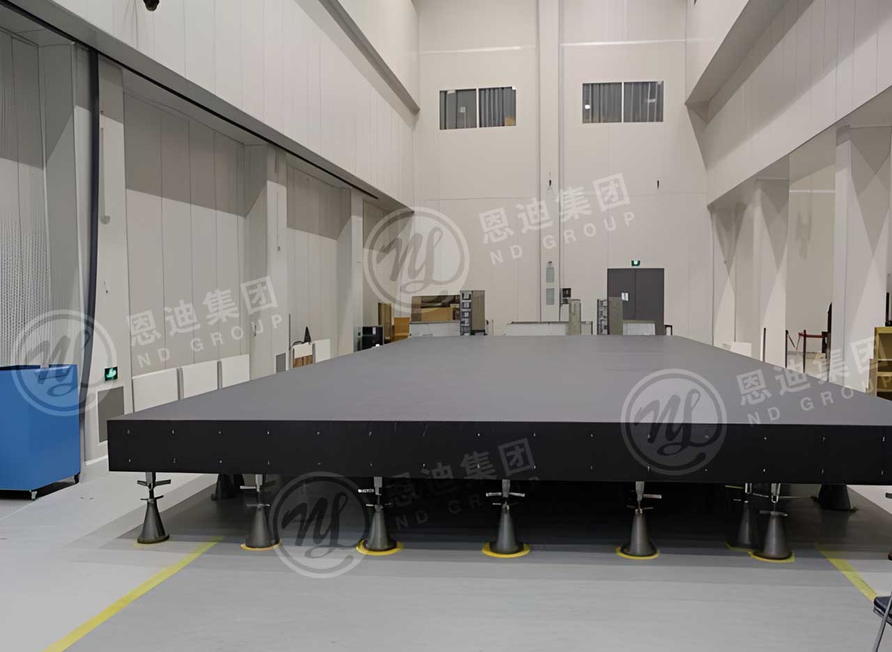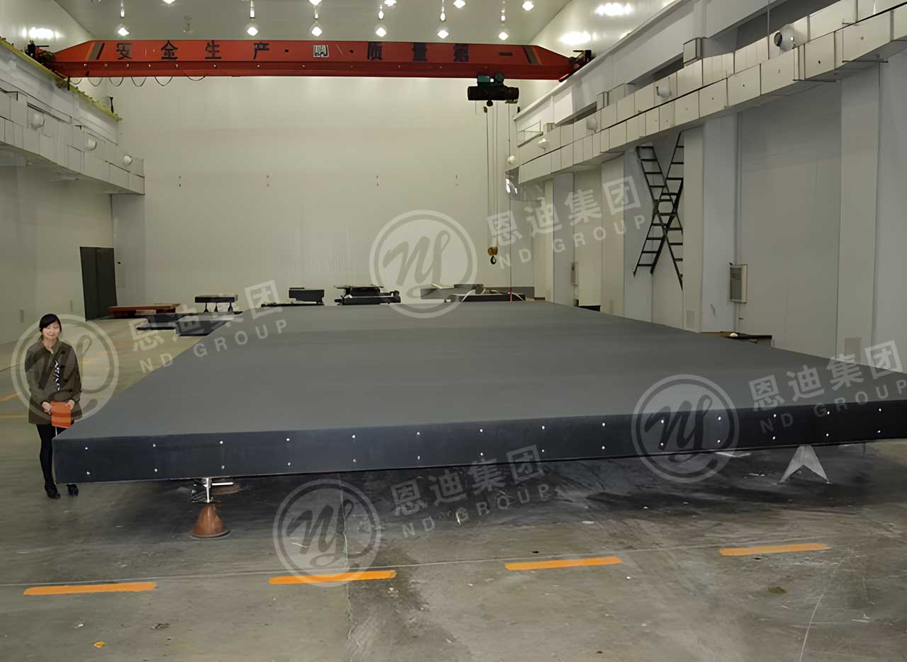 气浮法主要通过气悬浮的方法在光滑平台上通过气模支撑力将待试验产品平托起来,即气模支撑力与重力抵消来实现微重力模拟的一种方法,也是目前应用最广的方法之一。光滑平台主要由天然花岗岩制成,花岗岩具有抗压强度高、耐腐蚀等良好的物理特性,是建造大平台的理想材料。恩迪可为客户定制:特大型无缝拼接气浮式微重力模拟实验台,任意每平方米优于5µm。