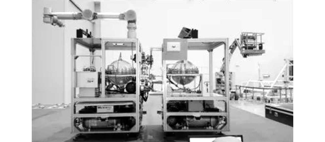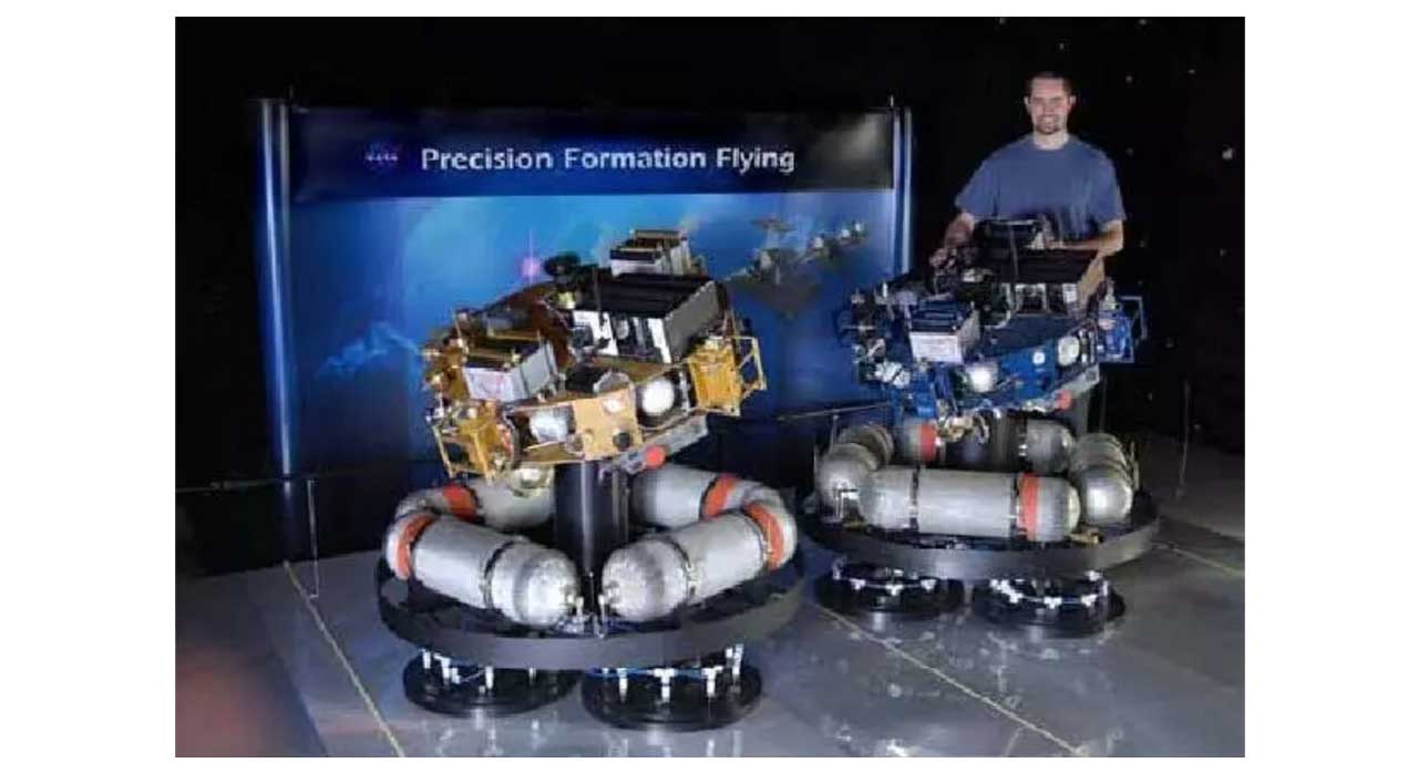 这个是哈尔滨工业大学飞行器机电一体化中心研制完成在轨操控的模拟验证系统,两个模拟器都采用气悬浮技术,完成了交会对接、在轨模块更换、推进剂补加等空间操控技术的测试,通过这套系统,哈尔滨工业大学协助航天八院805所完成了国内首次全流程的在轨服务地面试验。